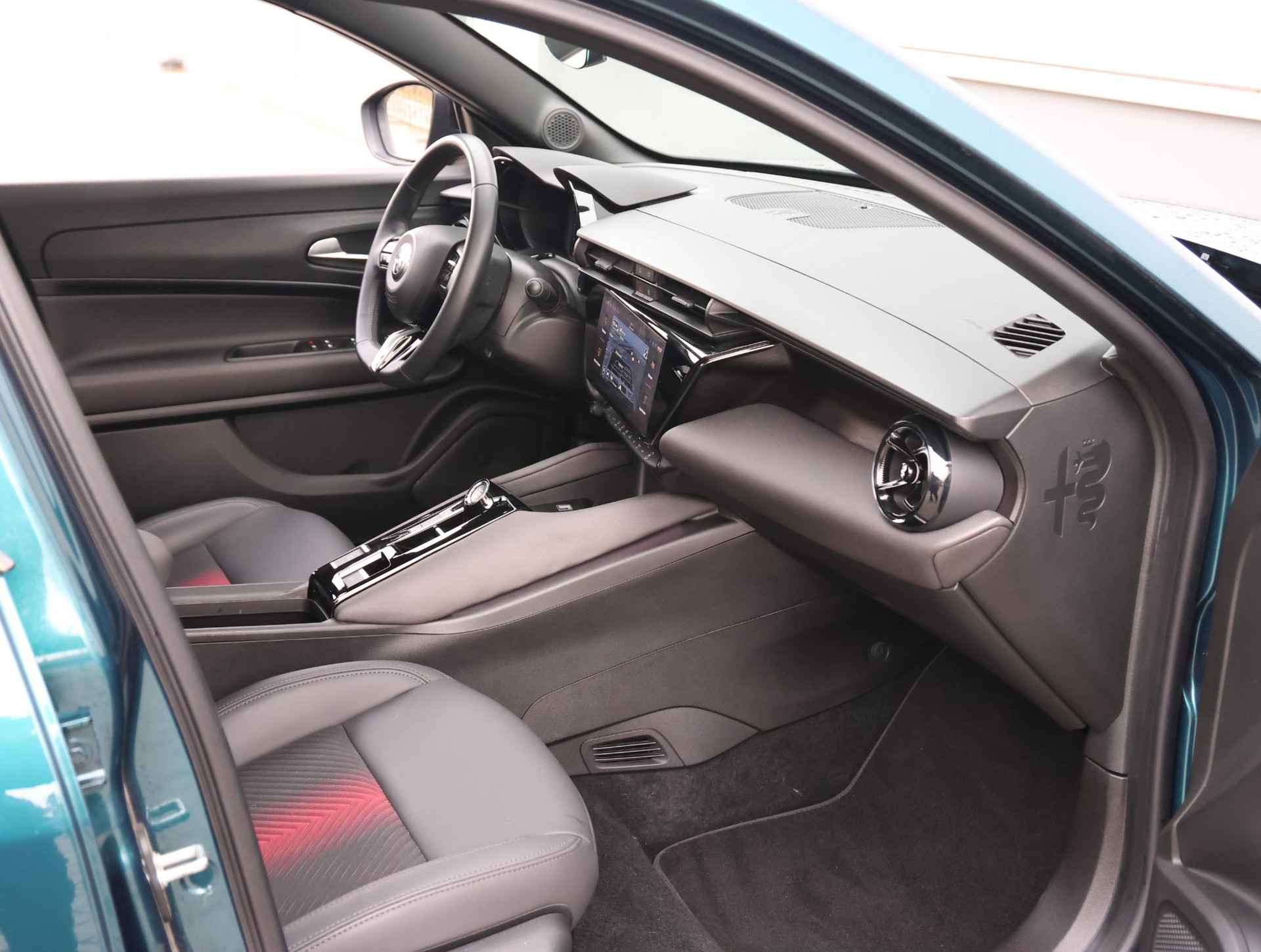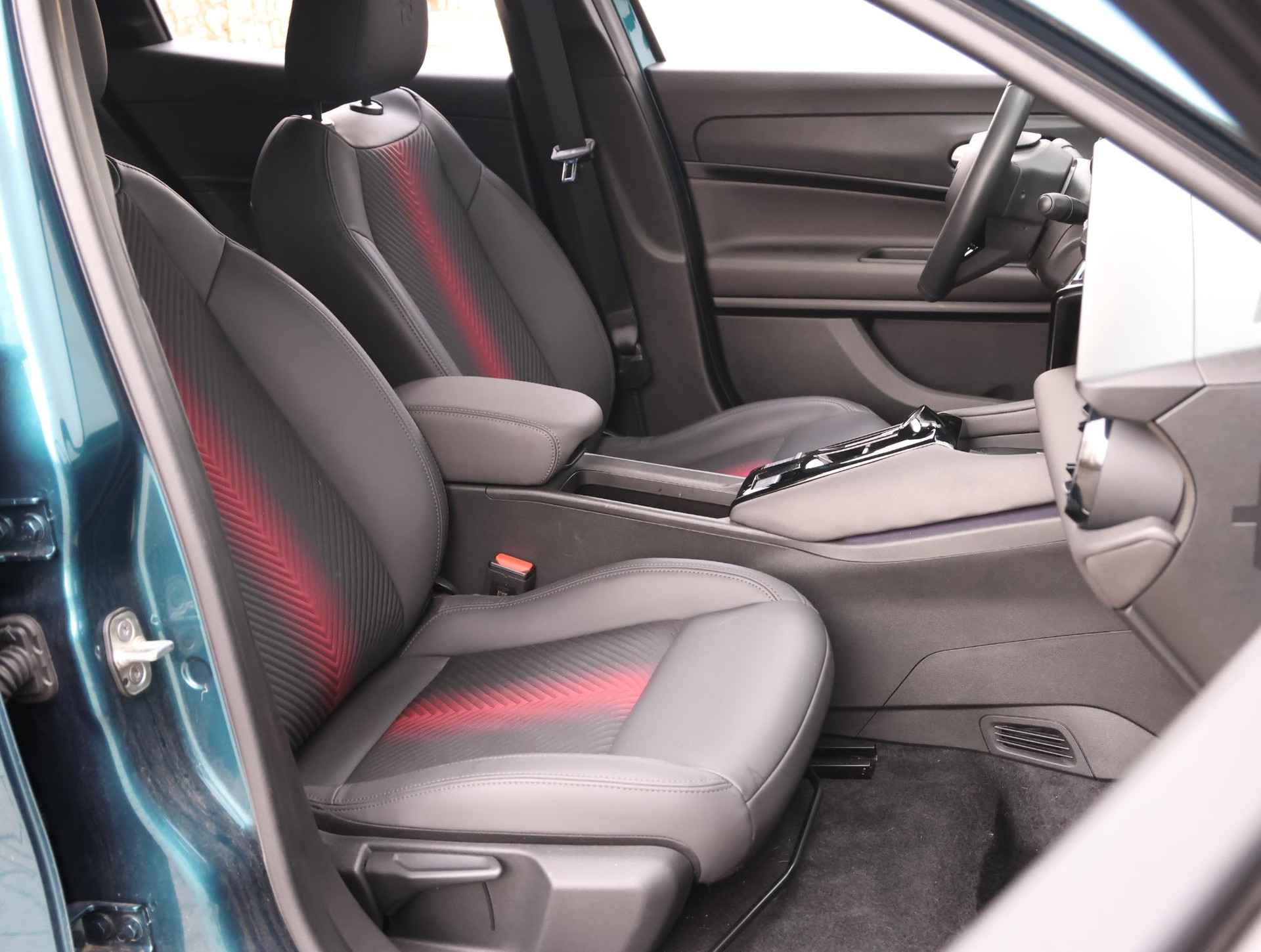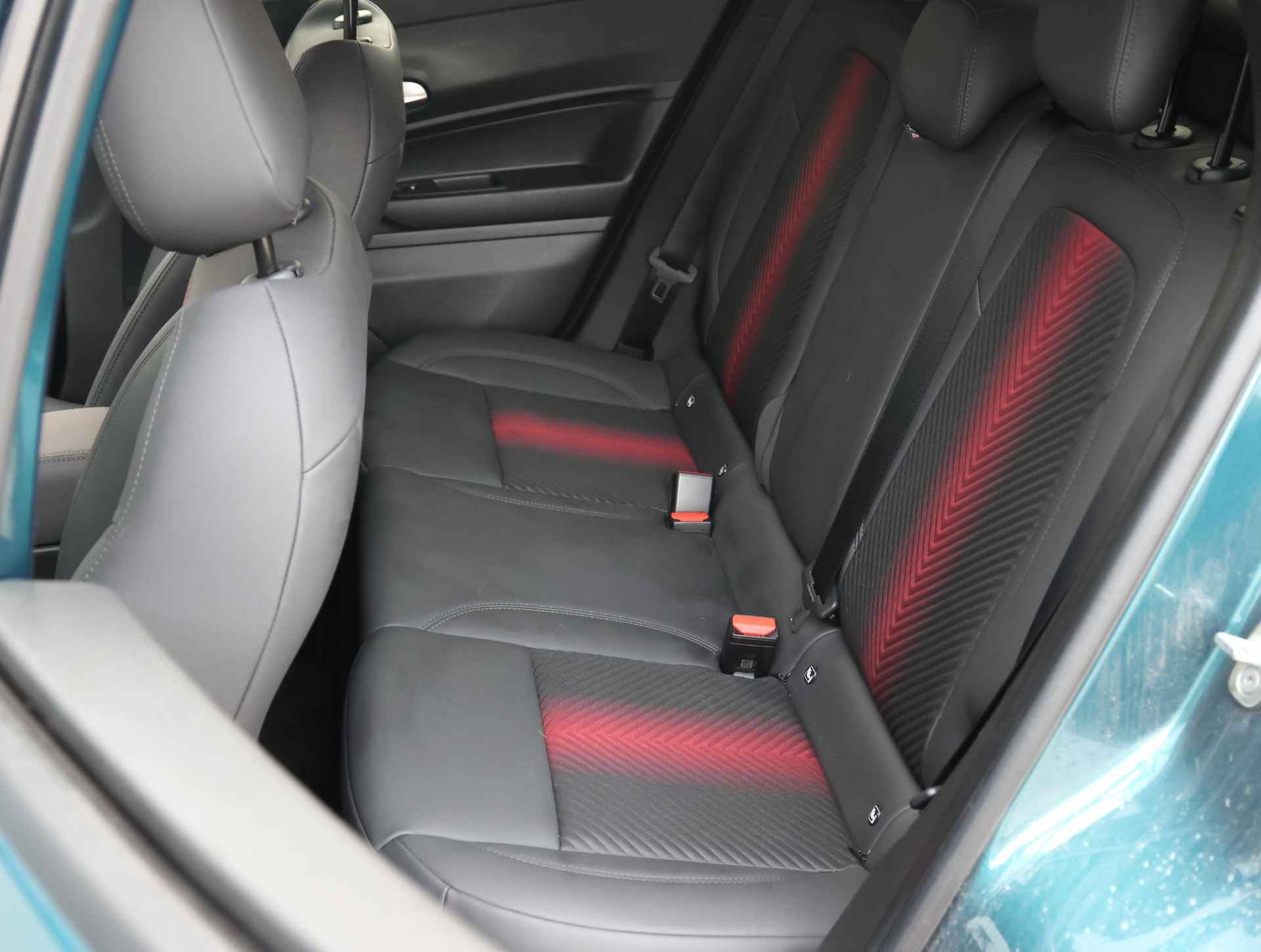 •  Spiga Stoffen/ecoleder bekleding met rode accenten - 6-voudig elektrisch verstelbare bestuurdersstoel, 6-voudig verstelbare passagiersstoel, verwarmbare voorstoelen