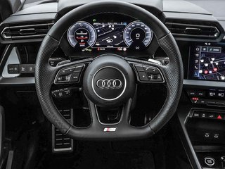 •  Driespaaks lederen sportcontourstuur, afgevlakt aan de onderzijde, multifunctioneel plus, met stuurpaddels
