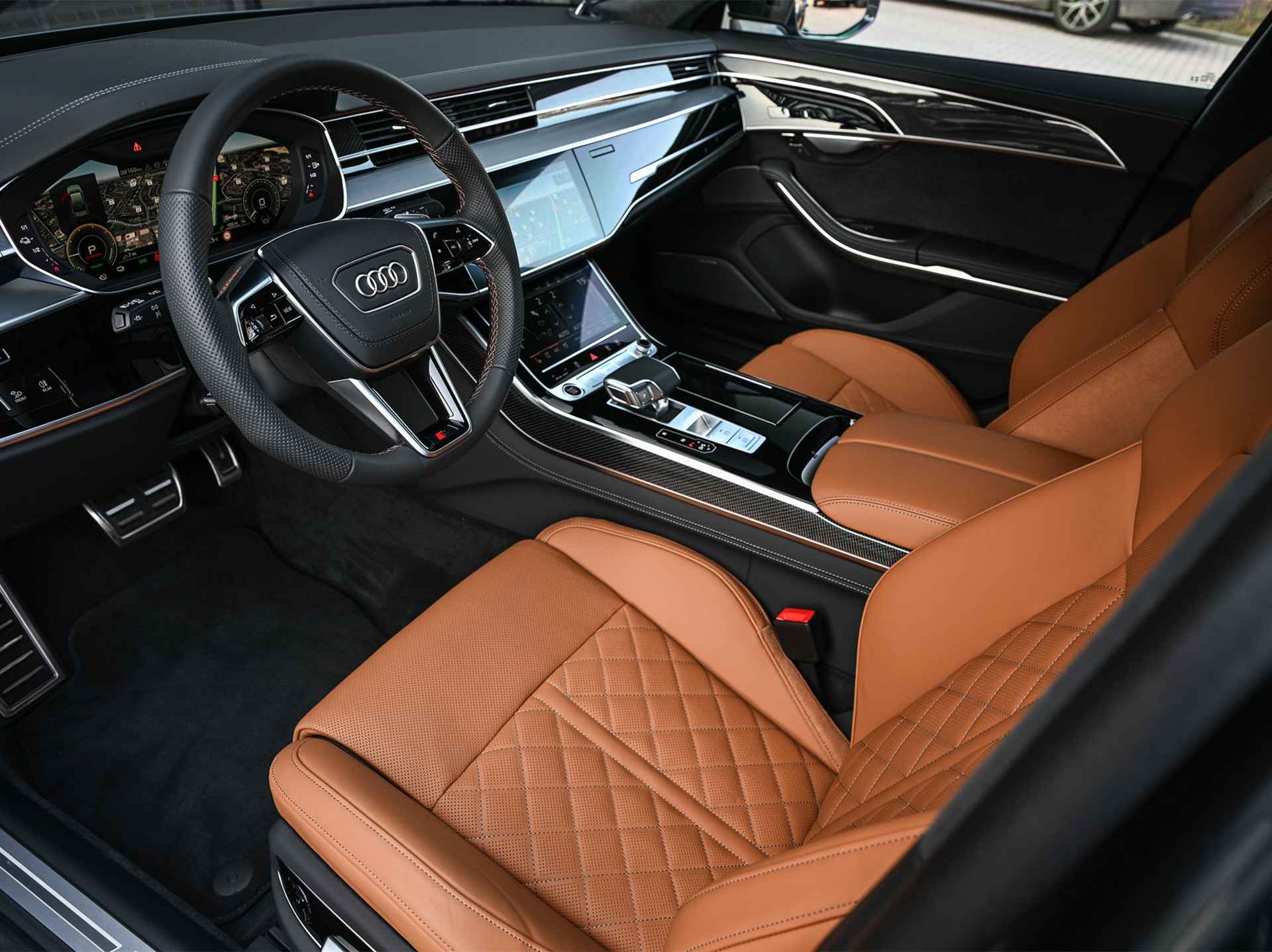 60 TFSI e quattro 463PK S-Line B&O Advanced | Head-Up Display | Achteras besturing | Panorama dak | Trekhaak | Soft-Close | Alcantara hemel bekleding | Carbon inleg | 360 Camera | Standkachel | Adaptive Cruise Control