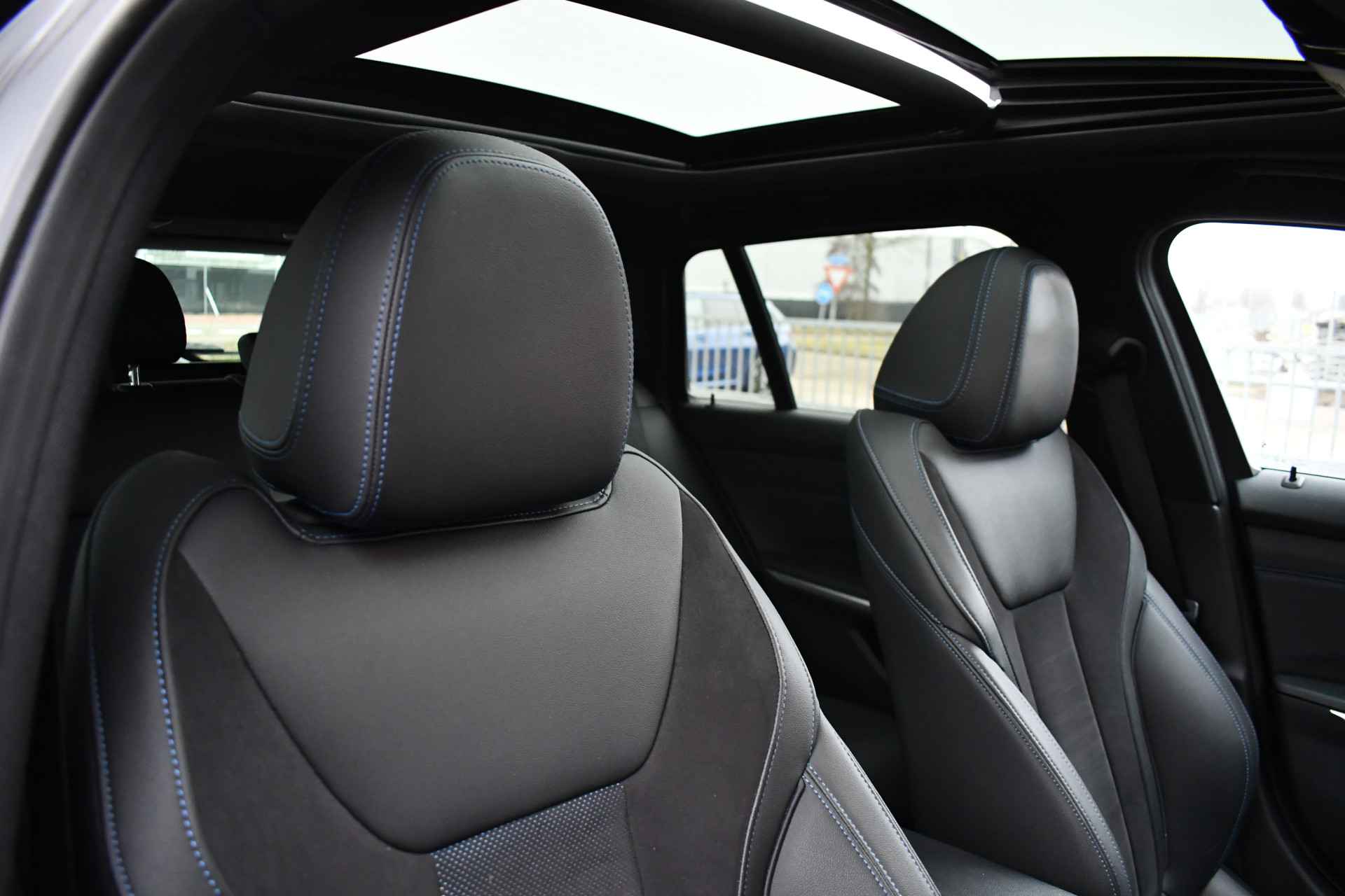 KGNL Leder alcantara zwart met blauw stiksel