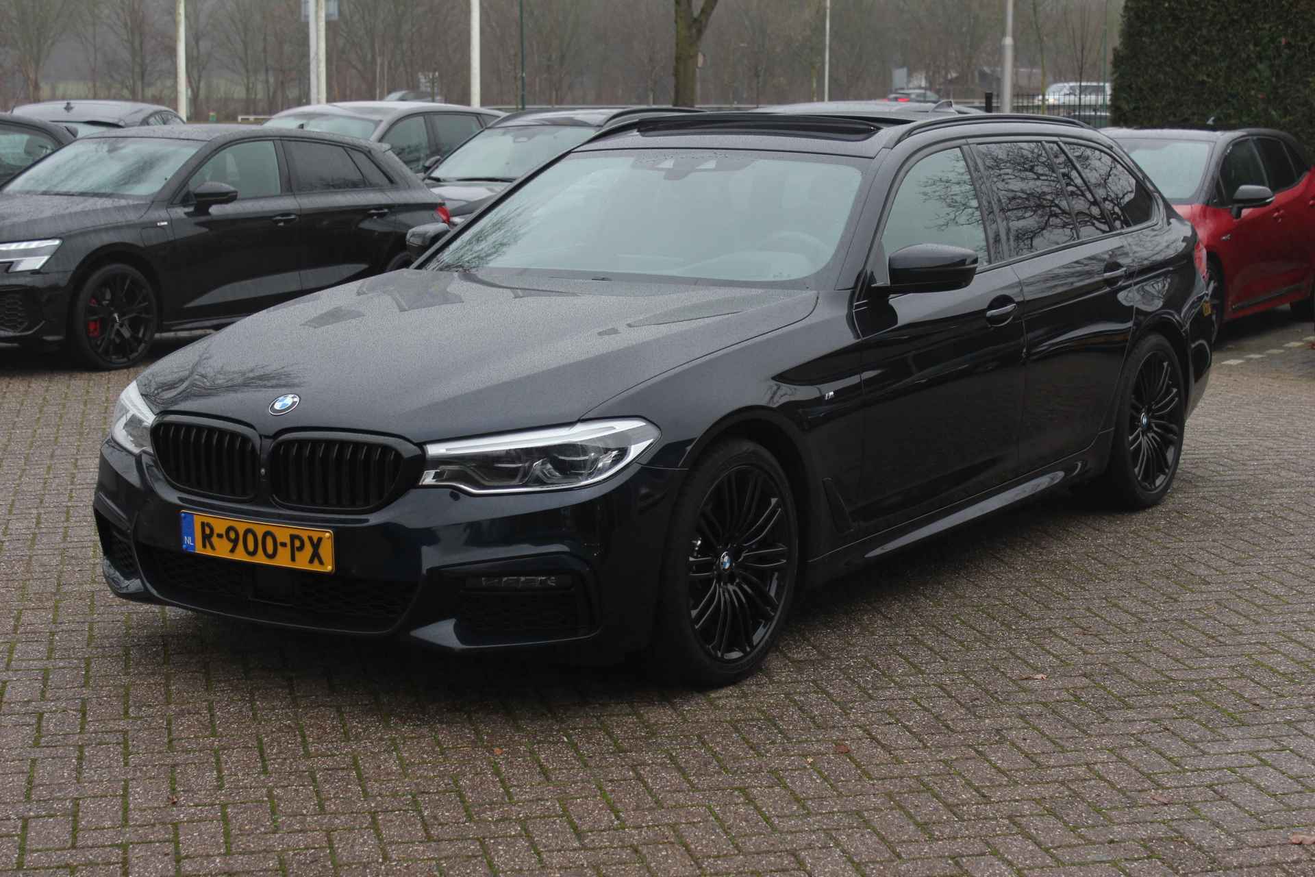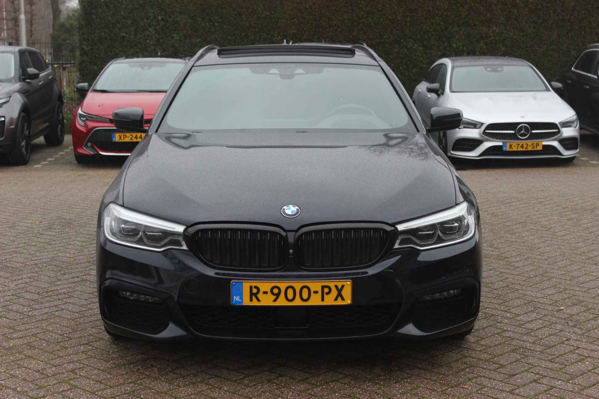 Touring 540i xDrive High Exe. M Sport / Trekhaak / Panoramadak / 360Camera / Head-up / Leder / 19'' / Harman Kardon / CarPlay / Stoelventilatie / Stuur+Stoelverwarming / 4zone / Dodehoek / DAB / ACC