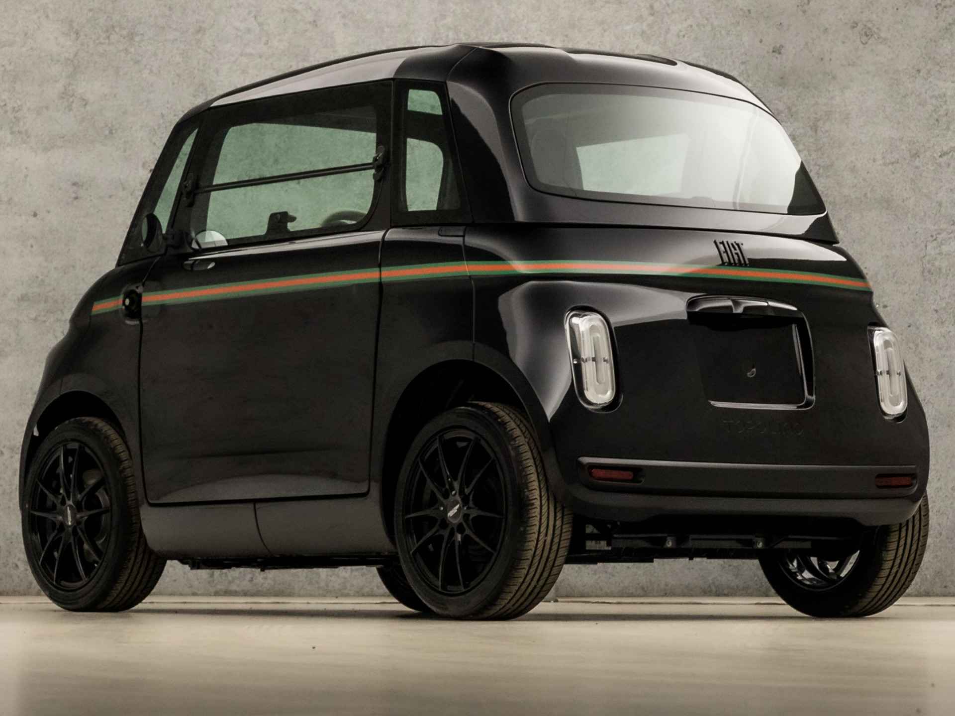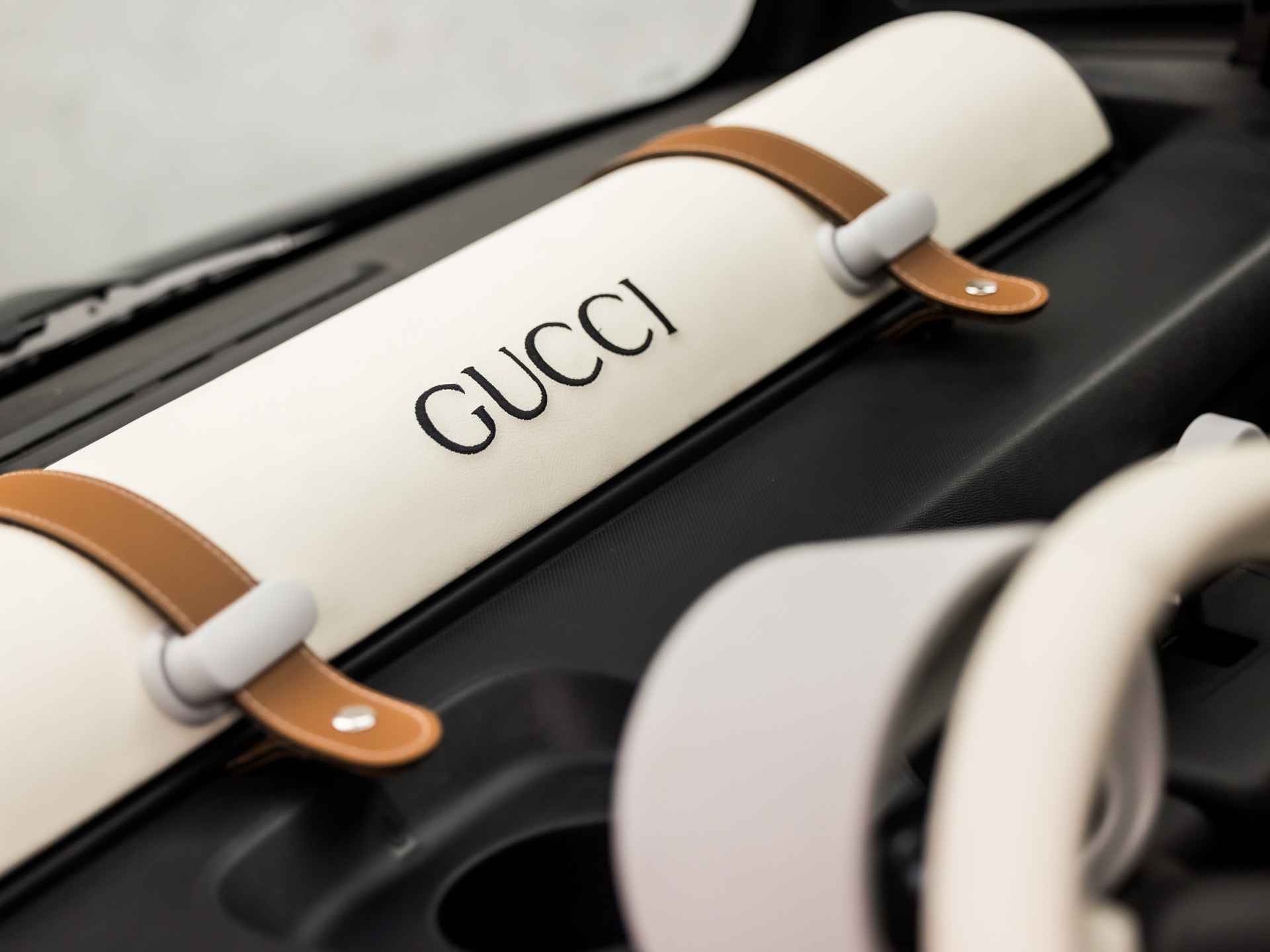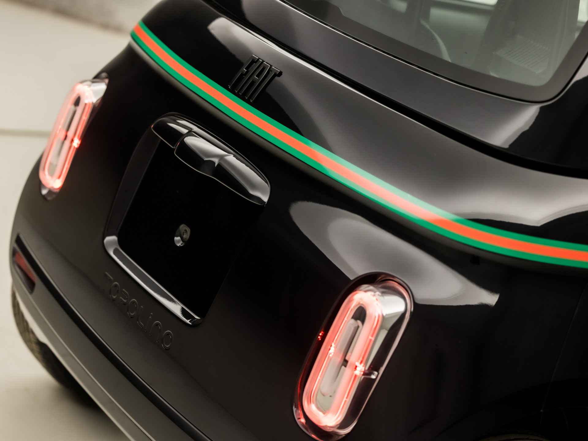 Topolino Gucci (BLACK PACK (GESPOTEN), HOOGGLANS ZWART LAK, 15 INCH LICHTMETALEN VELGEN, WIT LEER, LEDER STUURWIEL, NIEUWSTAAT)