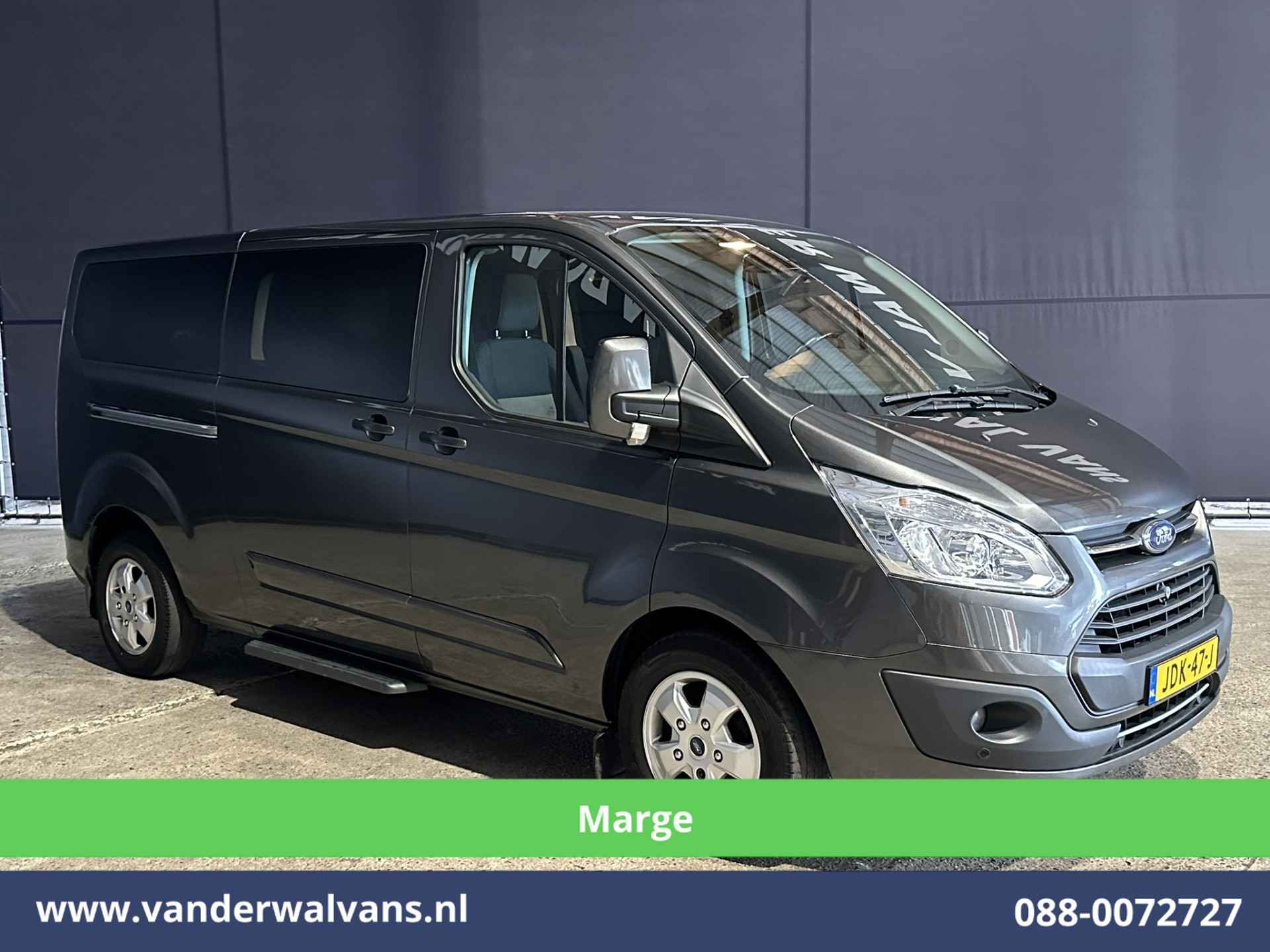 Custom 2.0 TDCI **MARGE, Geen btw, Geen bpm** 131pk Automaat L2H1 Personenbus Euro6 Airco | 2x zijdeur | 8-Zits | Navigatie Cruisecontrol, Trekhaak, Parkeersensoren, LM velgen, Verwarmde voorruit, Achterklep