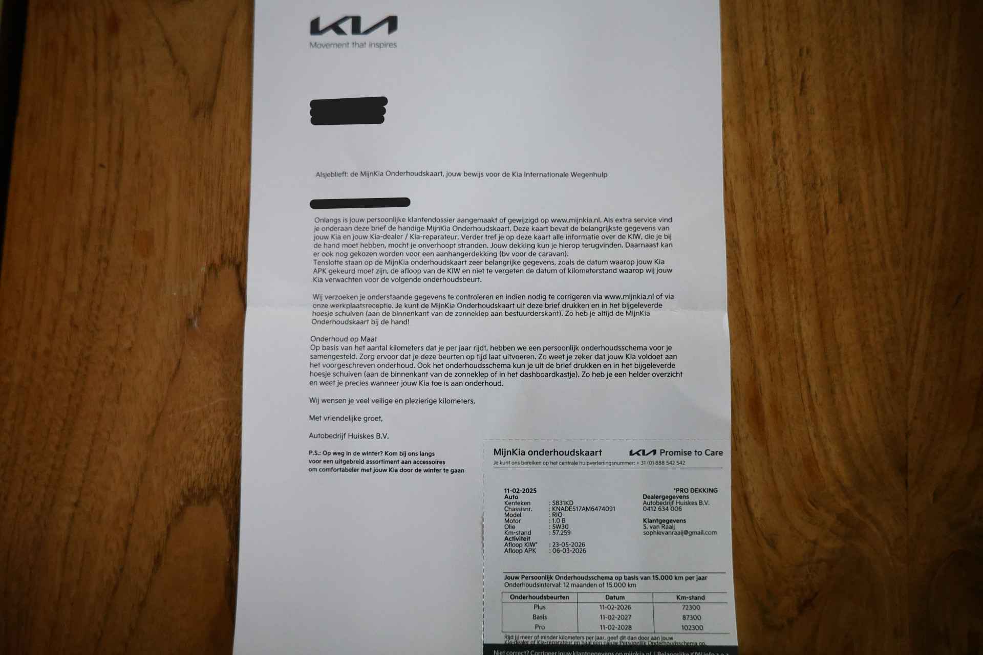 • Km. stand:
