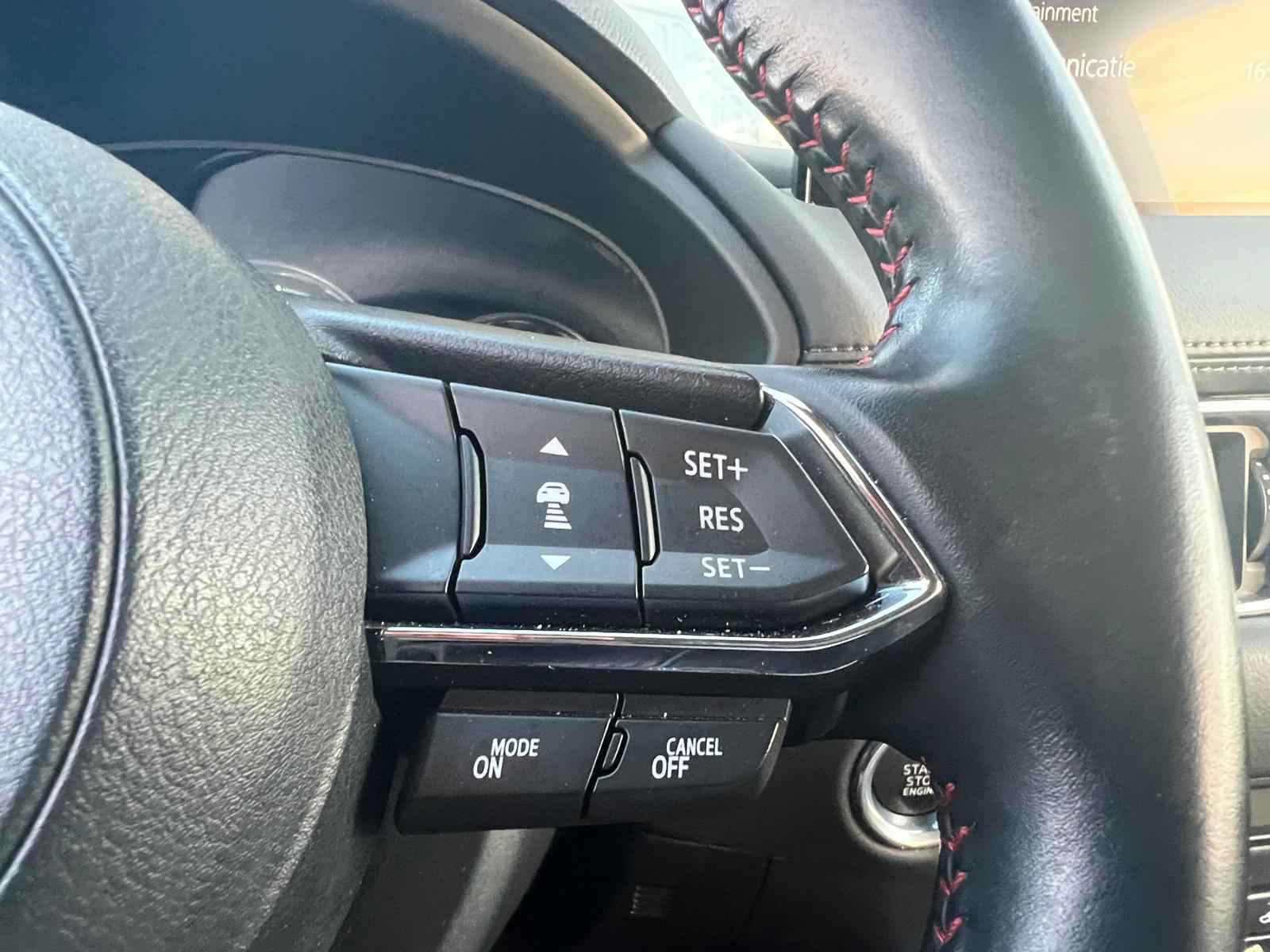 •  Mazda Radar Cruise Control (MRCC): houdt ingestelde snelheid aan en bewaart gewenste afstand tot voorganger (incl. stop & go-functie)