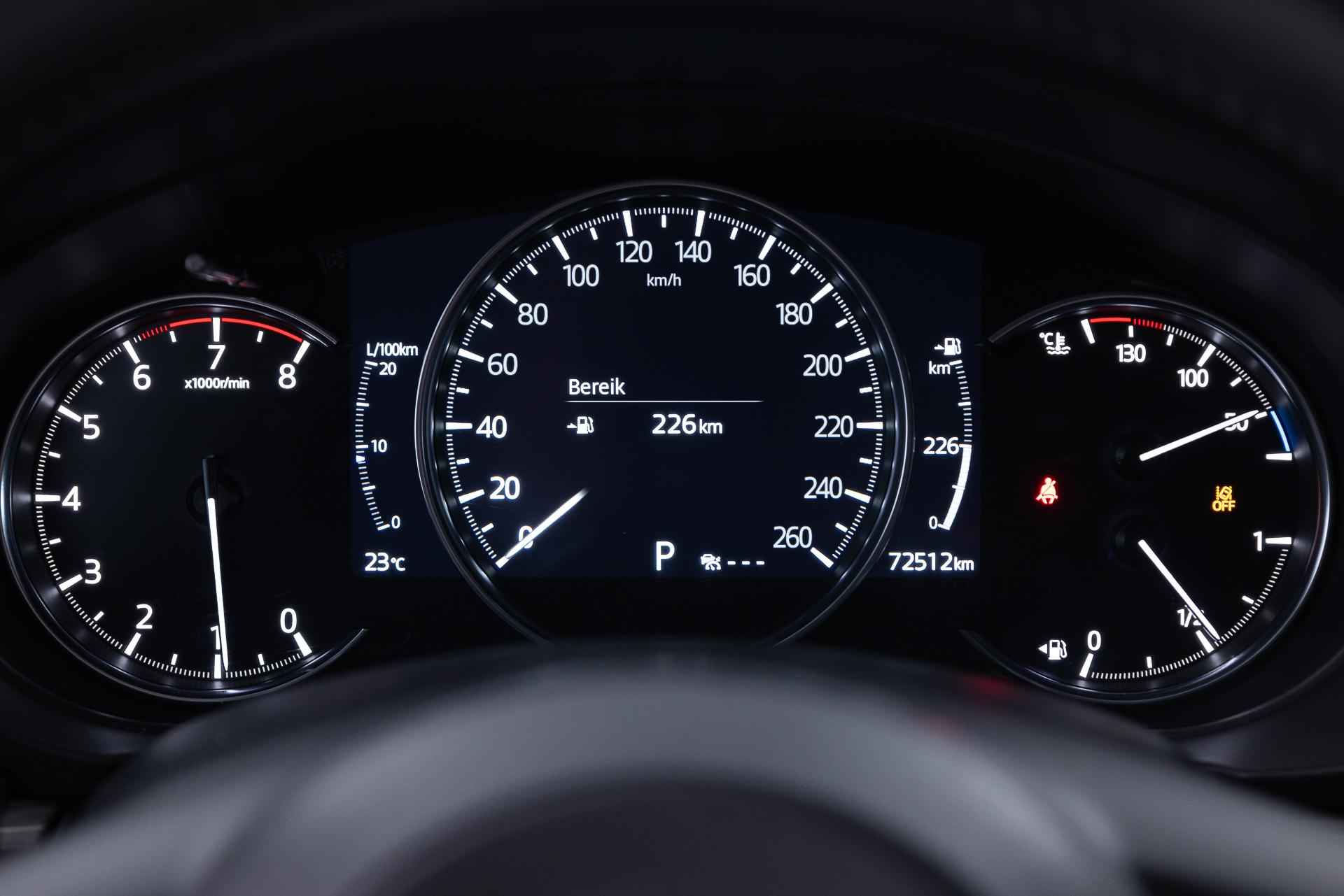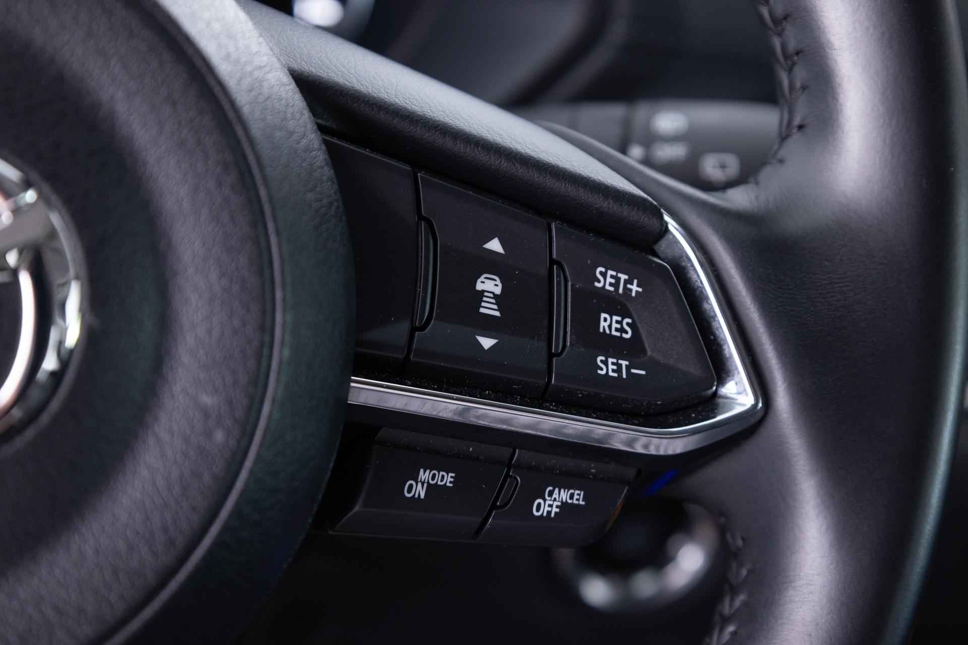 •  Mazda Radar Cruise Control (MRCC): houdt ingestelde snelheid aan en bewaart gewenste afstand tot voorganger (incl. stop & go-functie)