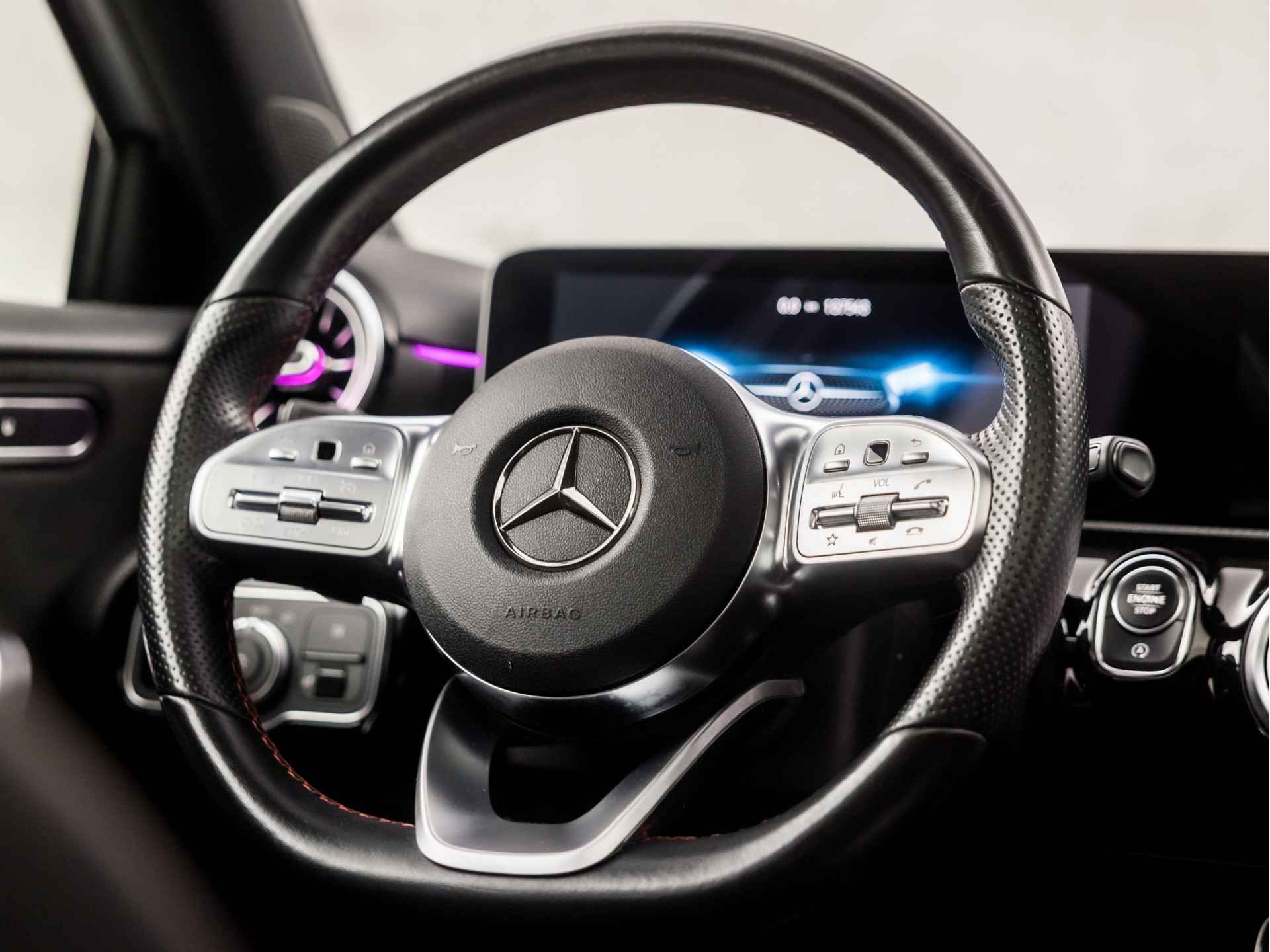 • 180 AMG Sport Automaat (SCHUIFDAK, APPLE CARPLAY, SFEERVERLICHTING, BURMESTER, KEYLESS, LEDER/ALCANTARA, CAMERA, SPORTSTOELEN, STOELVERWARMING, WIDESCREEN, GETINT GLAS, NIEUWSTAAT)