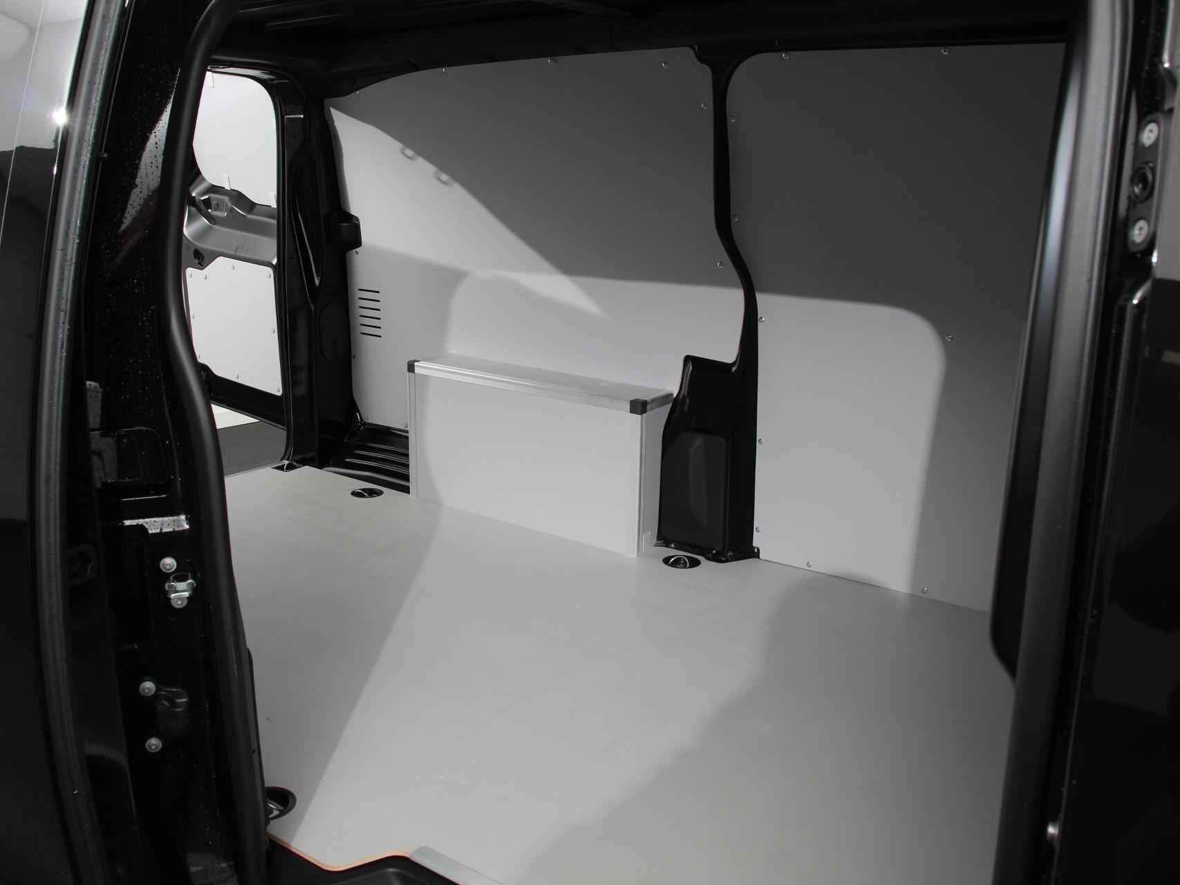 •  Houten vloer met anti-slip coating en aluminium randen incl. houten zijwandbekleding en wielkastbescherming in laadruimte