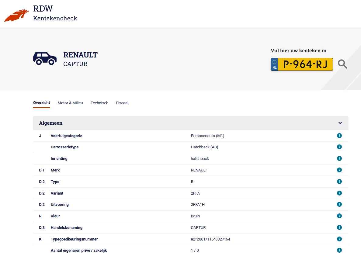 • Kenteken: