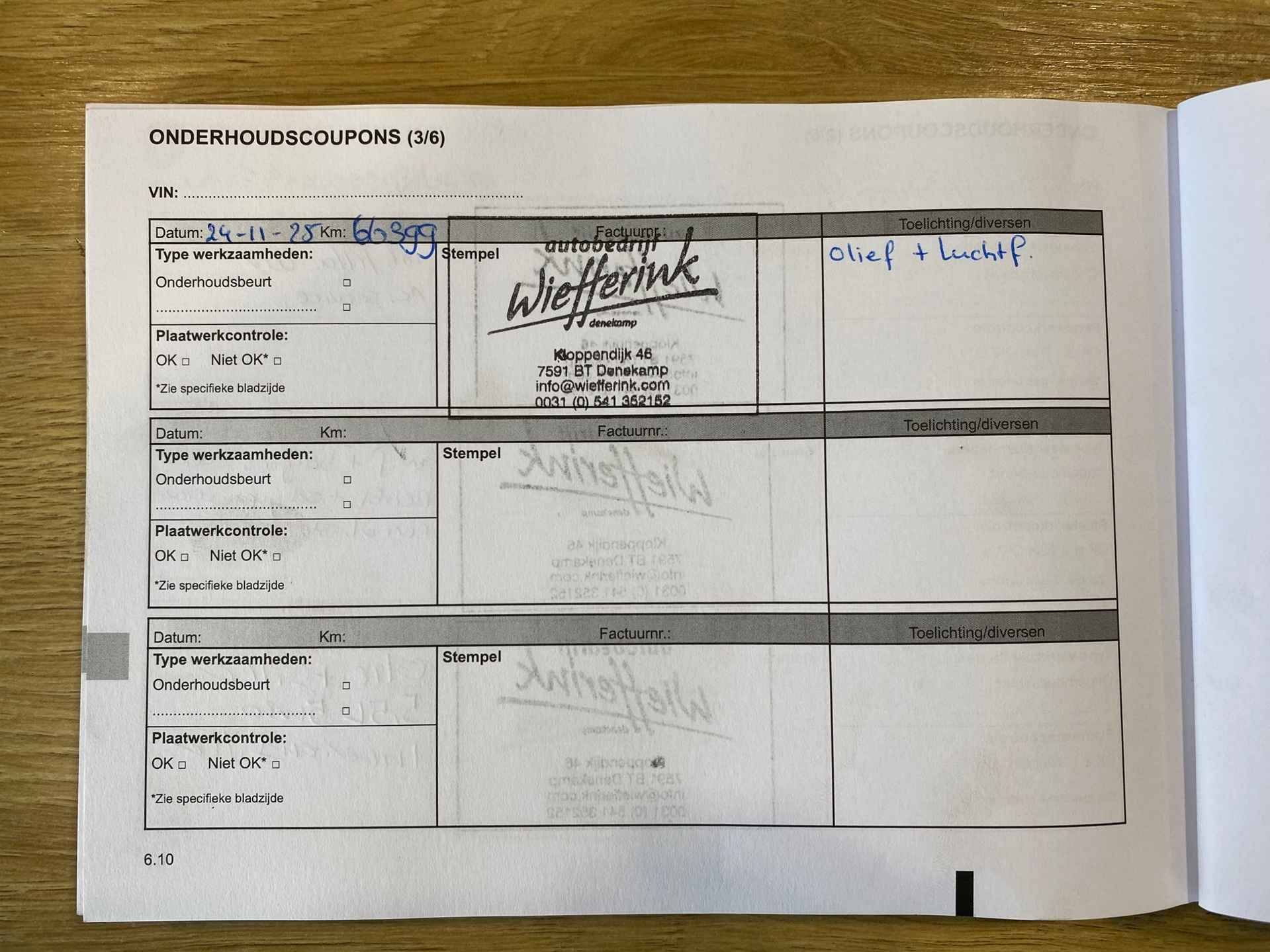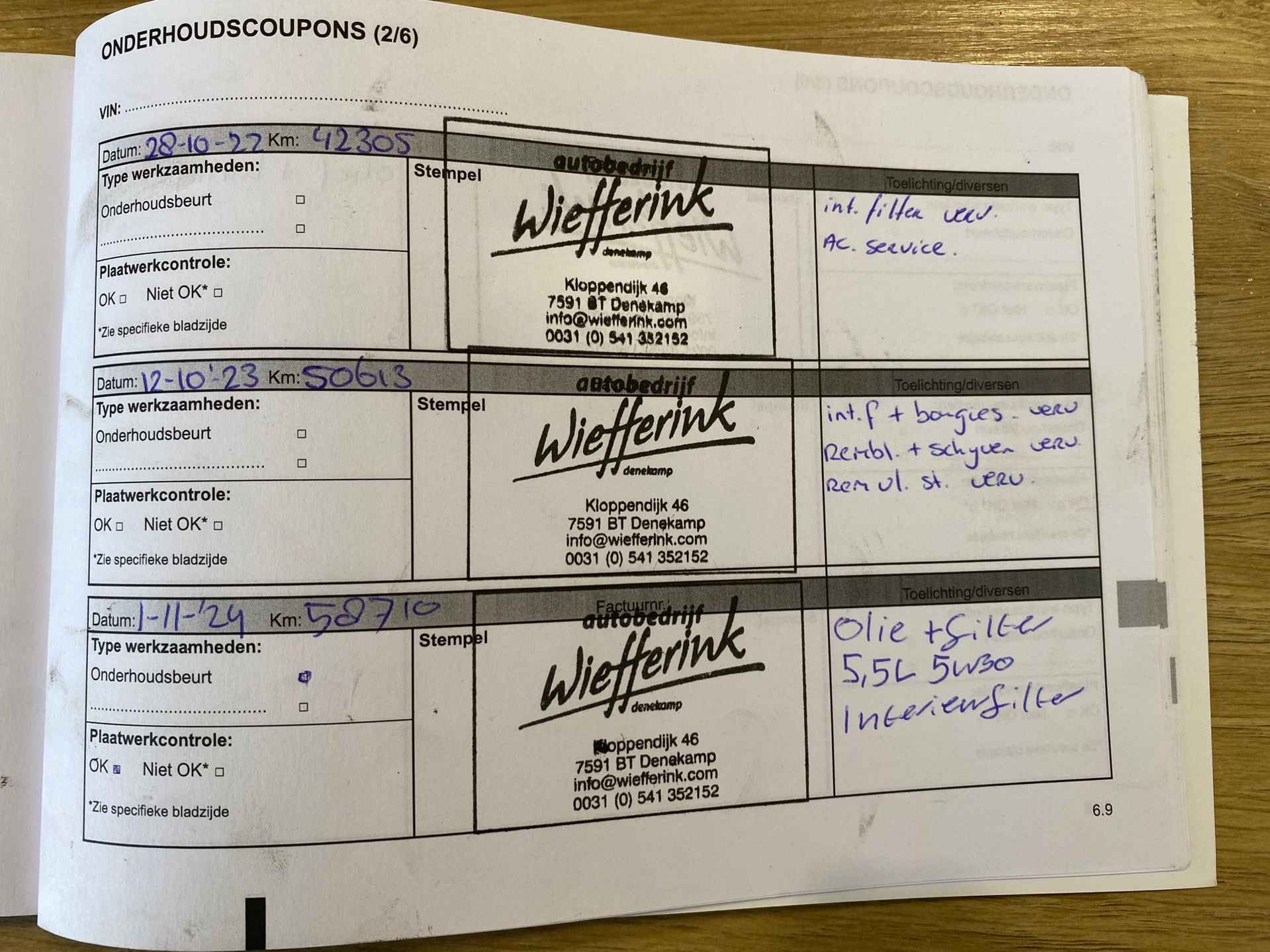 • Km. stand: