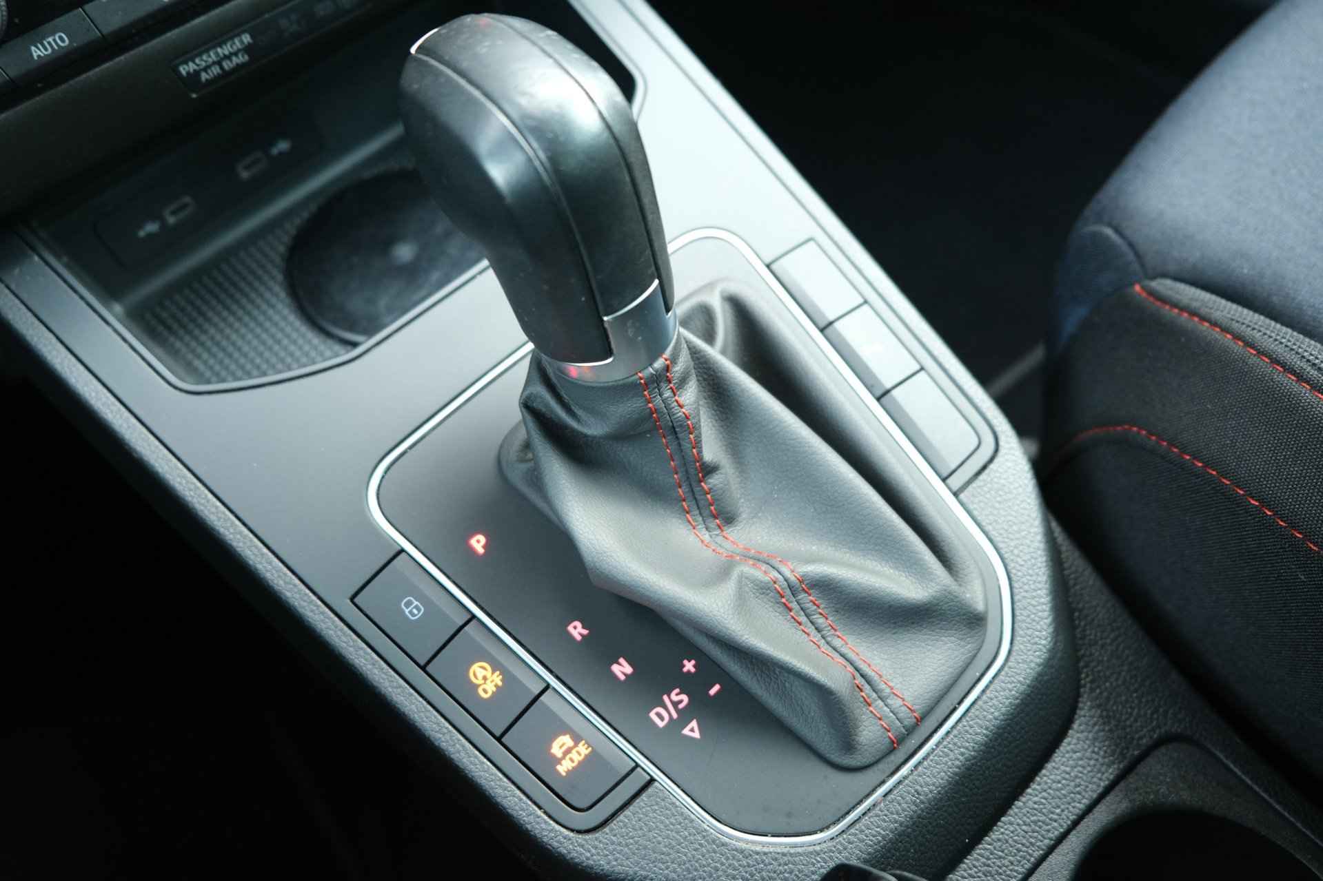 lederen stuurwiel en versnellingspook